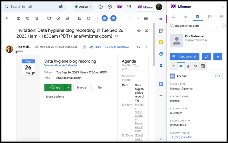 Salesforce sidebar in Gmail via Mixmax