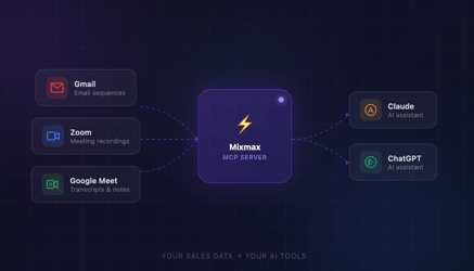 Mixmax is releasing its own MCP server. With Mixmax MCP, you can access your full history of email sequences and meeting notes from your favorite AI tool, including ChatGPT and Claude. With MCP you can quickly turn conversations into follow-up decks, deal review briefs, business cases, and more. Your AI tool becomes your context-aware sales partner that knows your deal history and can put it to work.